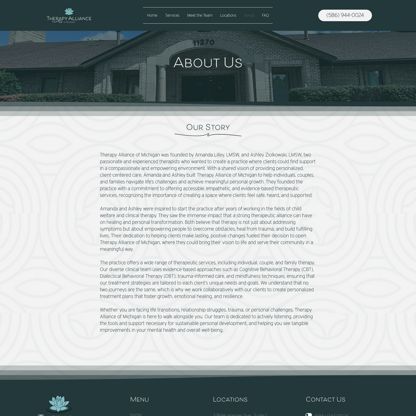 The result is a dynamic, engaging website that supports Therapy Alliance of Michigan's mission to provide accessible, high-quality mental health care while driving greater patient engagement.